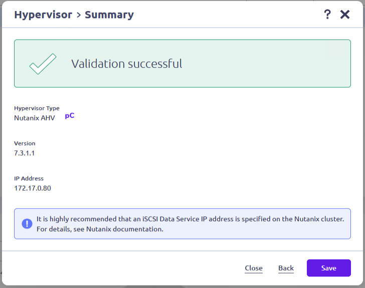 Again is the recommendation shown to use a Data Services IP Address in the cluster. That is not unique to Hycu. Every backup vendor recommends to do so.
