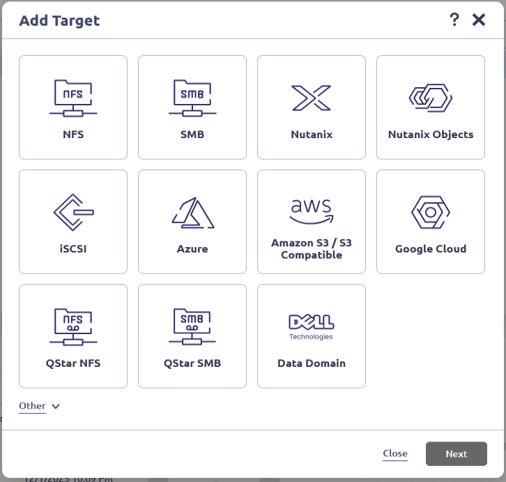 After changing the password, you have to add an target, where Hycu can save the backup data. In the picture to the right, you see several options you can use.