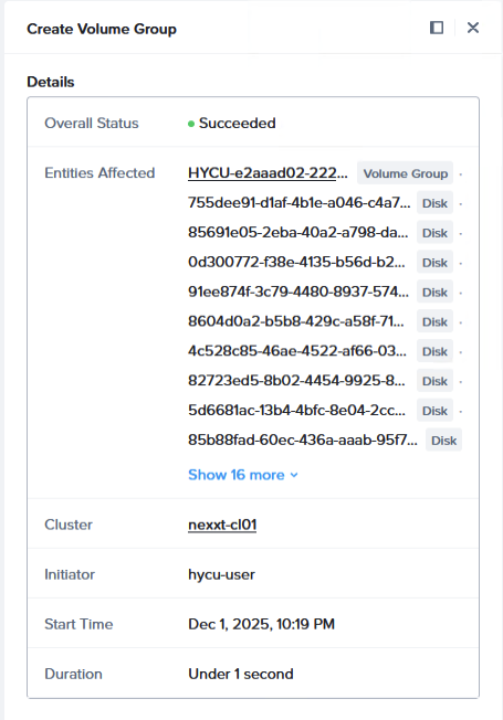 Note: If you delete a Nutanix Target from the Hycu Interface, then a task ‘ Delete Volume Group’ will appear in Prism Central.