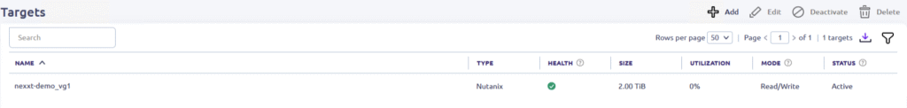 Finally, when the task is completed in Nutanix, the new target appears in the list.