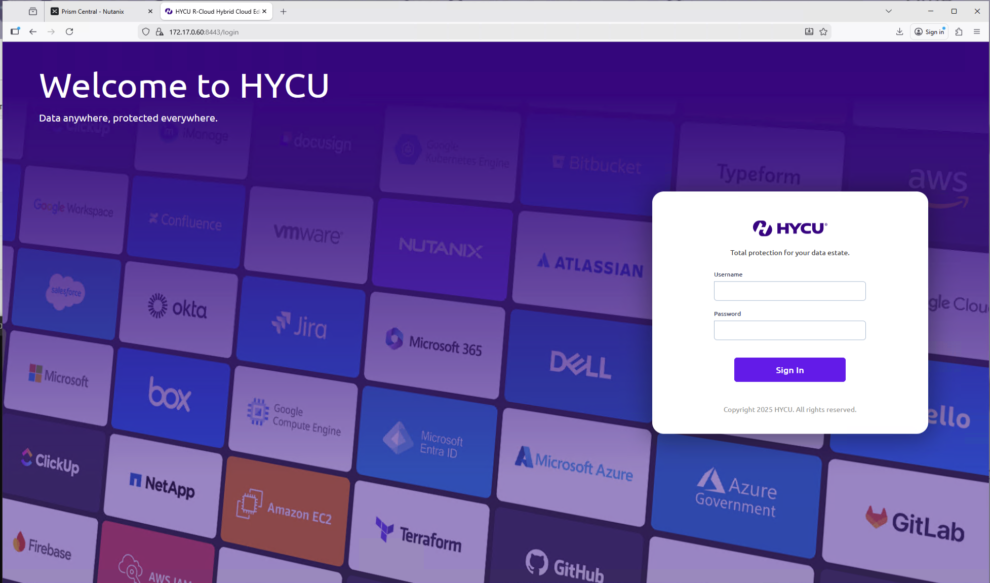 When the installation of the Hycu backup controller has succeeded, you can navigate to the Hycu Management interface using the address.